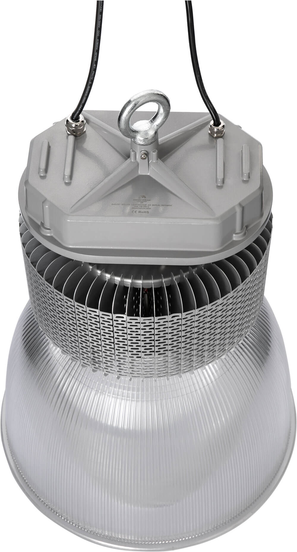 Der 250W LED Hallenstrahler der AML® HB-Reihe ist die kompromisslose Profi-Lösung, die herausragendes Design und atmosphärische Lichtwirkung perfekt vereint. Sein elegantes Gehäuse aus poliertem Aluminium wird durch den PVC-Schirm ergänzt, der für ein besonders weiches und blendfreies Licht sorgt. Im Innern garantieren ausschließlich Premium-Komponenten von Mean Well® und Lumileds® eine hocheffiziente, zertifiziert flimmerfreie Lichtqualität, während die Dimmfunktion die volle Kontrolle über die Atmosphäre ermöglicht.